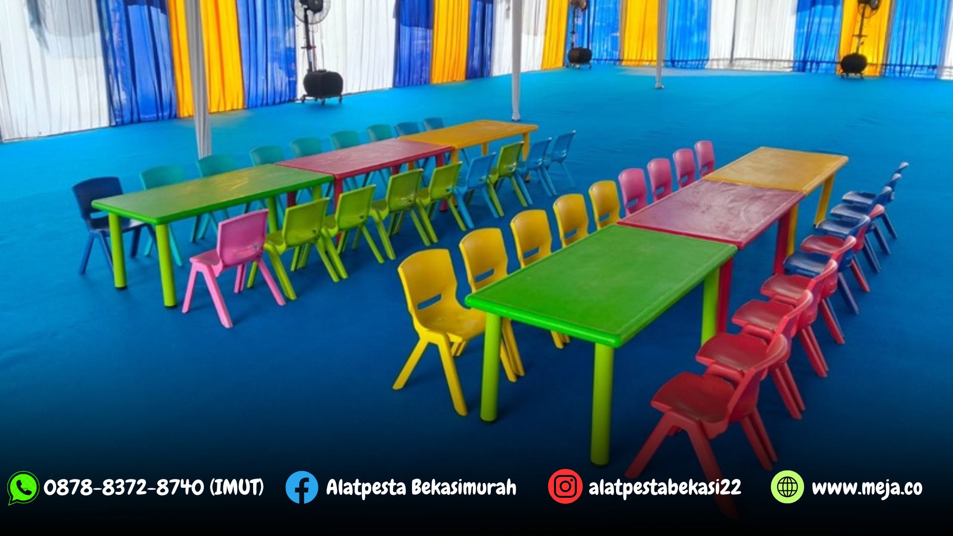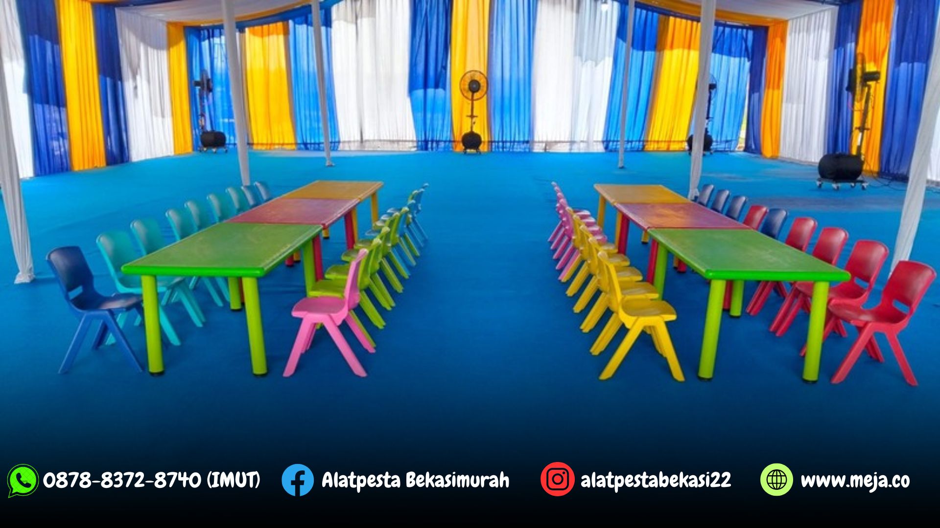 Meja dan kursi anak yang kami sewakan dengan kualitas terbaik, harga sewanya juga sangat ekonomis & terjangkau. Kami siap mensupport semua acara diberbagai wilayah jakarta, depok, bogor, tangerang, banten, serang, bekasi, cikarang, karawang, purwakarta, bandung, canjur, sukabumi, subang dan sekitarnya.