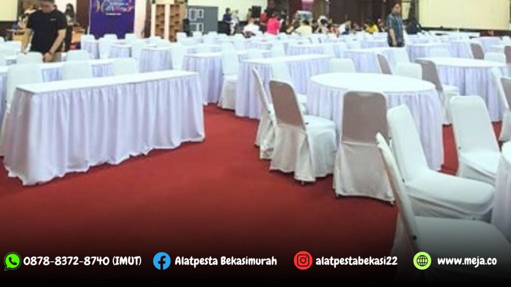 Jasa sewa alat pesta kami CV.BINTANG JAYA EVENT Menyediakan Rental Meja Bulat Meja Kotak dan Kursi Cover Putih Depok. Meja dengan banyak pilihan model yang bisa anda sesuaikan dengan kebutuhan acara.