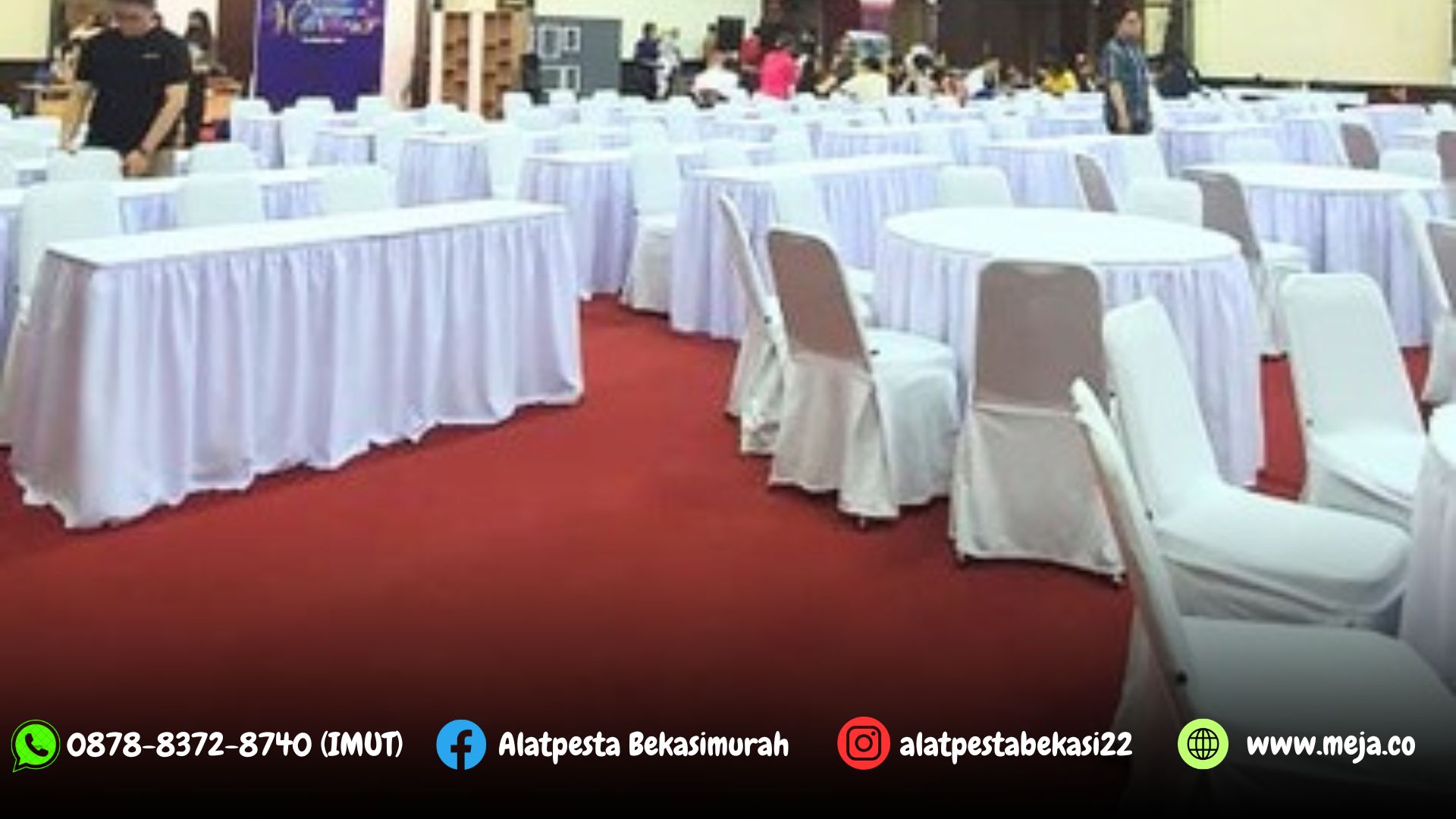 Rental Meja Bulat Meja Kotak dan Kursi Cover Putih Depok