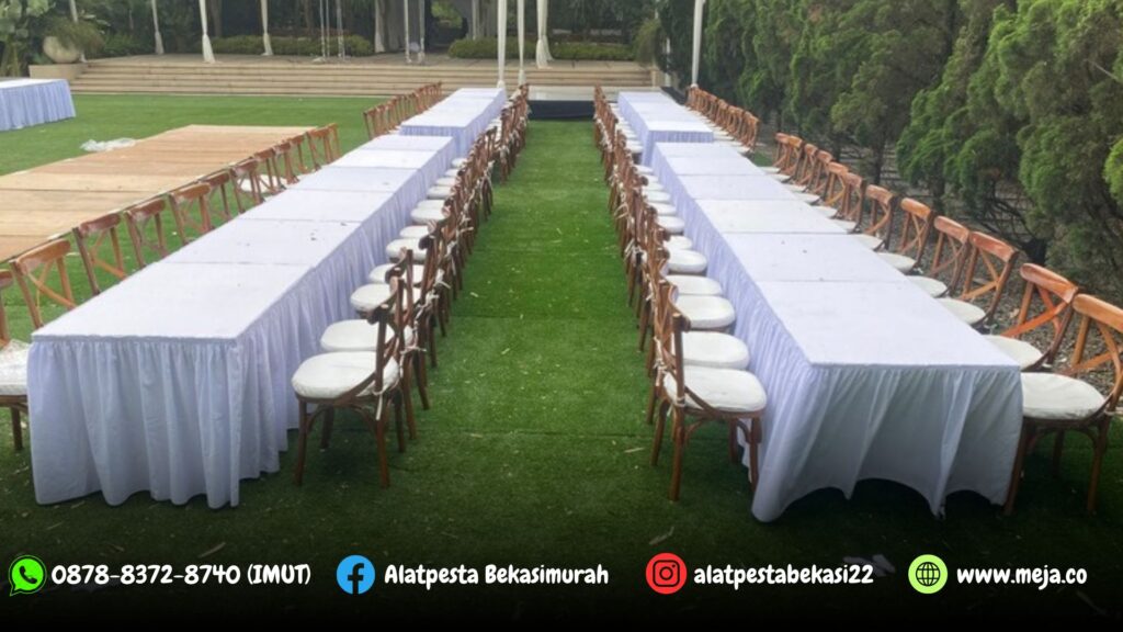 CV.BINTANG JAYA EVENT Menyediakan Sewa Long Table dan Kursi Crossback Mewah Area Jakarta dengan kualitas terbaik siap mensupport semua acara baik acara formal maupun infoormal, melayani acara indoor dan outdoor.